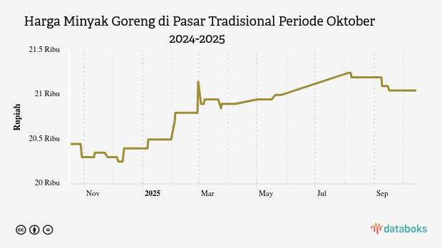 Adapun terhadap harga 30 hari lalu, perkembangan harga minyak goreng harian di pasar tradisional mengalami penurunan dari sebelumnya yang tercatat sebesar Rp21,2 ribu .