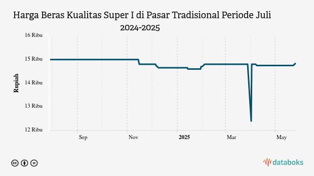 Adapun terhadap harga 30 hari lalu, perkembangan harga beras kualitas super I harian di pasar tradisional mengalami kenaikan dari sebelumnya yang tercatat sebesar Rp14,8 ribu .
