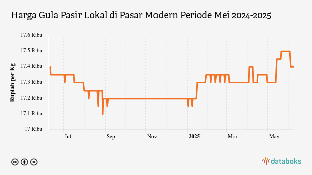 Harga Gula Pasir Lokal di Pasar Modern Periode Mei 2024-2025