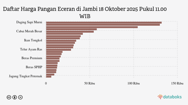 Berikut daftar lengkap harga 25 bahan pangan di Jambi menurut Bapanas 18 Oktober 2025 pukul 11.00 WIB.