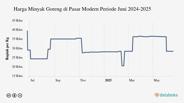 Adapun terhadap harga sebulan terakhir, perkembangan harga minyak goreng harian di pasar modern mengalami penurunan dari sebelumnya yang tercatat sebesar Rp36,5 ribu per kg.