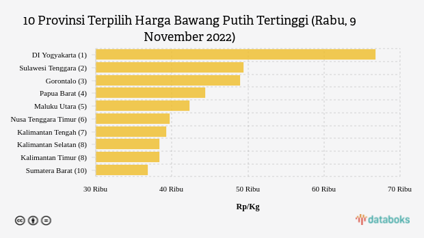 Harga Bawang Putih di DI Yogyakarta Rp 66.800 per Kg (Rabu, 9 November 2022)