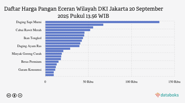 Berikut daftar lengkap harga 21 bahan pangan di DKI Jakarta menurut Bapanas 20 September 2025 pukul 13.56 WIB.