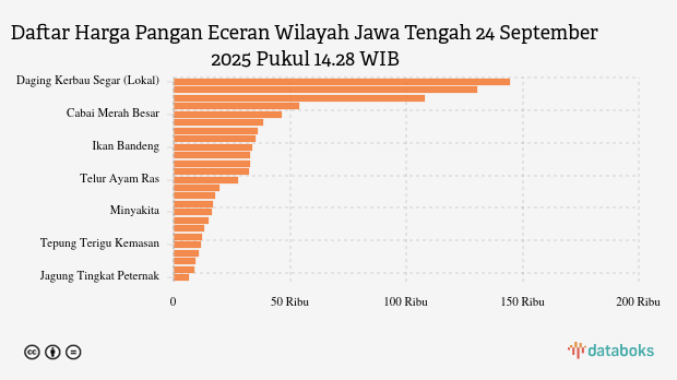 Berikut daftar lengkap harga 25 bahan pangan di Jawa Tengah menurut Bapanas 24 September 2025 pukul 14.28 WIB.