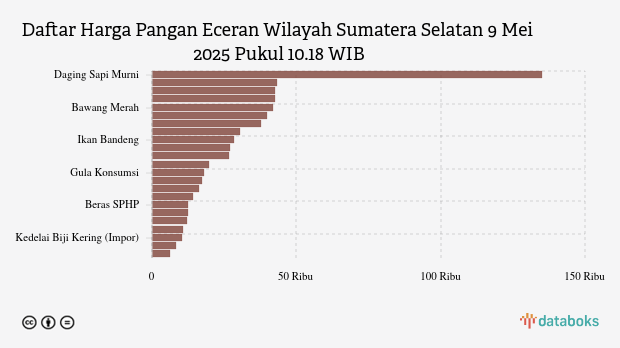 Berikut daftar lengkap harga 23 bahan pangan di Sumatera Selatan menurut Bapanas 9 Mei 2025 pukul 10.18 WIB.