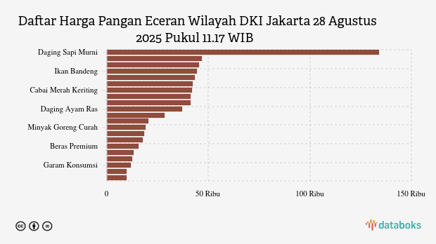 Berikut daftar lengkap harga 21 bahan pangan di DKI Jakarta menurut Bapanas 28 Agustus 2025 pukul 11.17 WIB.