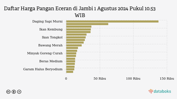 Berikut daftar lengkap harga 20 bahan pangan di Jambi menurut Bapanas 1 Agustus 2024 pukul 10.53 WIB.