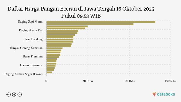 Berikut daftar lengkap harga 25 bahan pangan di Jawa Tengah menurut Bapanas 16 Oktober 2025 pukul 09.53 WIB.
