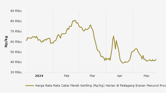 Tren Harga Cabai Merah Keriting di Jawa Barat Periode Januari 2024 - Mei 2024