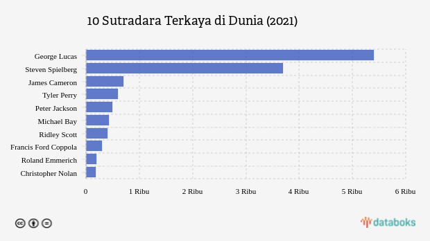 Dilansir dari wealthygorilla.com, George Lucas dinobatkan seabgai sutradara terkaya di dunia saat ini. Total kekayaannya mencapai US$ 5,4 miliar atau sekitar Rp 77,04 triliun (kurs Rp 14.267/US$). George Lucas merupakan sutradara dari film Star Wars.