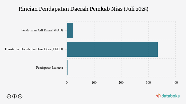 Merujuk data Anggaran Pendapatan dan Belanja Daerah (APBD) 2025, anggaran Pendapatan Daerah Pemerintah Kabupaten (Pemkab) Nias, Provinsi Sumatera Utara, sebesar Rp967,15 miliar.