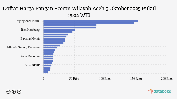 Berikut daftar lengkap harga 24 bahan pangan di Aceh menurut Bapanas 5 Oktober 2025 pukul 15.04 WIB.