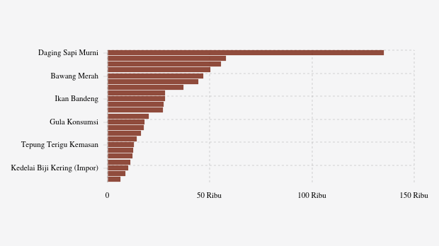 - Gula Konsumsi: Rp18.055 per kg (naik 0,04%)