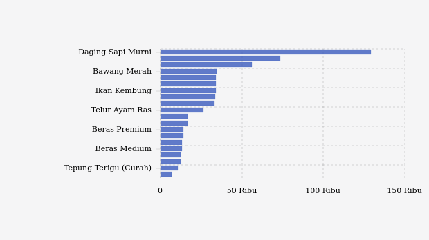 - Gula Konsumsi: Rp16.560 per kg (turun 0,6%)
