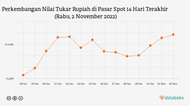 Perkembangan Nilai Tukar Rupiah di Pasar Spot 14 Hari Terakhir (Rabu, 2 November 2022)