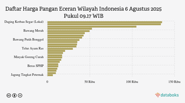 Berikut daftar lengkap harga 25 bahan pangan di Indonesia menurut Bapanas 6 Agustus 2025 pukul 09.17 WIB.