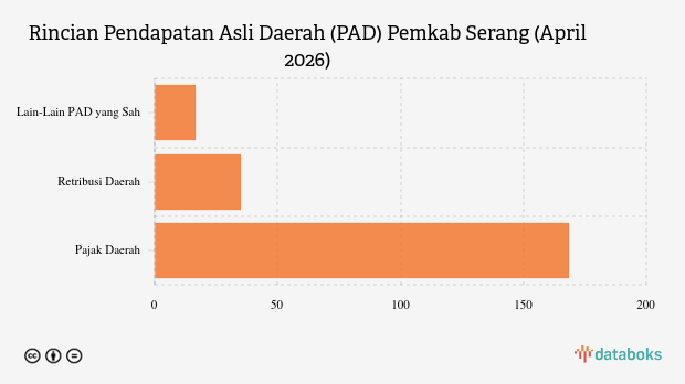 Merujuk data Anggaran Pendapatan dan Belanja Daerah (APBD) 2026, anggaran Pendapatan Asli Daerah (PAD) Pemerintah Kabupaten (Pemkab) Serang, Provinsi Banten, sebesar Rp1.150,33 miliar.