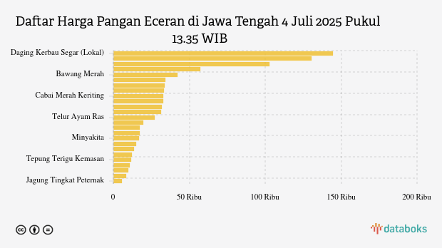 Berikut daftar lengkap harga 25 bahan pangan di Jawa Tengah menurut Bapanas 4 Juli 2025 pukul 13.35 WIB.
