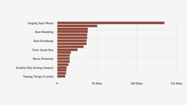 - Gula Konsumsi: Rp17.000 per kg (turun 1,85%)