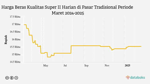 Adapun terhadap harga sebulan terakhir, perkembangan harga beras kualitas super II harian di pasar tradisional mengalami kenaikan dari sebelumnya yang tercatat sebesar Rp15,5 ribu .