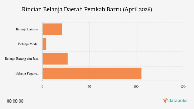 Merujuk data Anggaran Pendapatan dan Belanja Daerah (APBD) 2026, anggaran Belanja Daerah Pemerintah Kabupaten (Pemkab) Barru, Provinsi Sulawesi Selatan, sebesar Rp757,85 miliar.