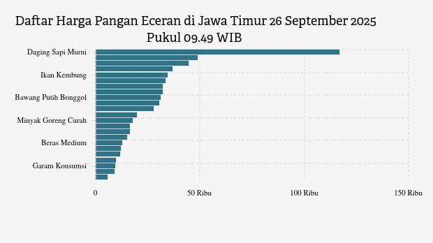 Berikut daftar lengkap harga 23 bahan pangan di Jawa Timur menurut Bapanas 26 September 2025 pukul 09.49 WIB.