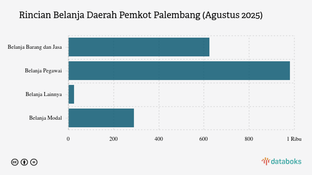 Selama periode Januari 2025 hingga Agustus 2025, realisasi Belanja Daerah Pemkot Palembang sebesar Rp1.916,33 miliar atau setara 40,16% dari anggaran Belanja Daerah 2025.