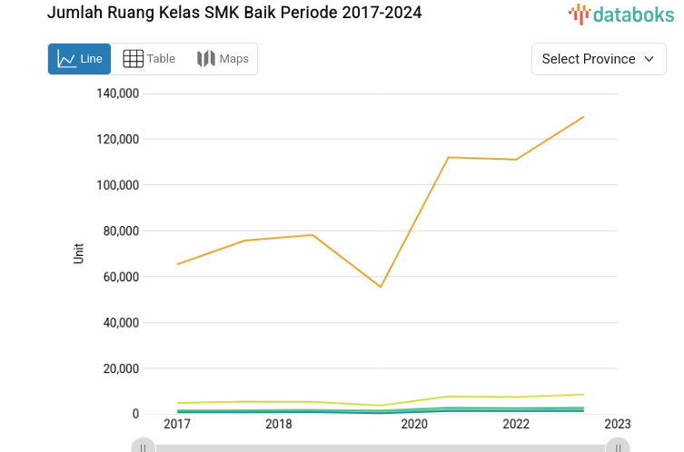 Jumlah Ruang Kelas SMK Baik Tertinggi Ada di Jawa Barat dengan 25.666 Unit