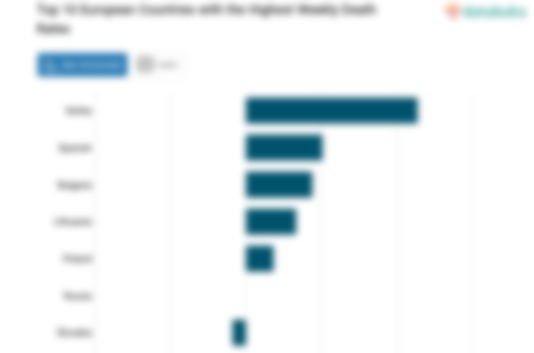 Next is Spain, which recorded 20.29 percent more deaths than the previous week. Daily data shows a 21.33% decrease in deaths compared to the previous day. Bulgaria recorded 20 deaths (up 17.65%), Lithuania saw a 13.33% increase in deaths, and Poland a 7.27% increase.