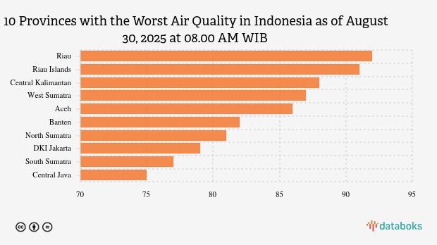 Here is a list of the 10 provinces with the worst air quality index in Indonesia on Saturday, August 30, 2025, at 08.00 AM WIB.