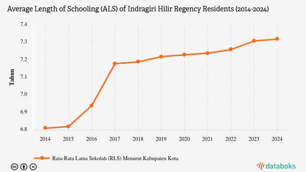 The average length of schooling (ALS) for residents aged 25 years and over in Indragiri Hilir, Riau, reached 7.32 years in 2024.