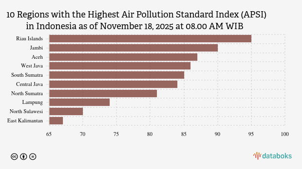 Here is a list of the 10 provinces with the worst air quality index in Indonesia on Tuesday, November 18, 2025, at 08.00 AM WIB.