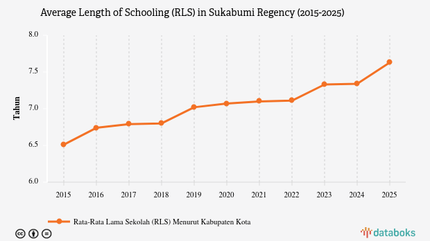 The average length of schooling (RLS) for residents aged 25 and over in Sukabumi, West Java, reached 7.63 years in 2025.