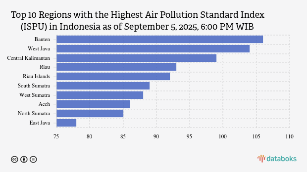 Here is a list of the 10 provinces with the worst air quality index in Indonesia on Friday, September 5, 2025, at 6:00 PM WIB.