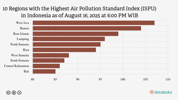 Air quality in West Java is the worst in Indonesia tonight. Based on the Air Pollution Standard Index (ISPU) page of the Ministry of Environment and Forestry (KLHK) on Saturday (16/8/2025) at 6:00 PM WIB, it was revealed that the air quality index in West Java was 107.