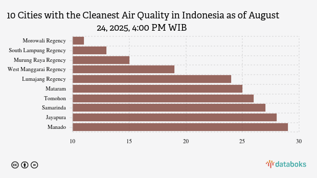 Here is the complete list of 10 cities with the cleanest air quality in Indonesia according to KLHK on Sunday, August 24, 2025, at 4:00 PM WIB.