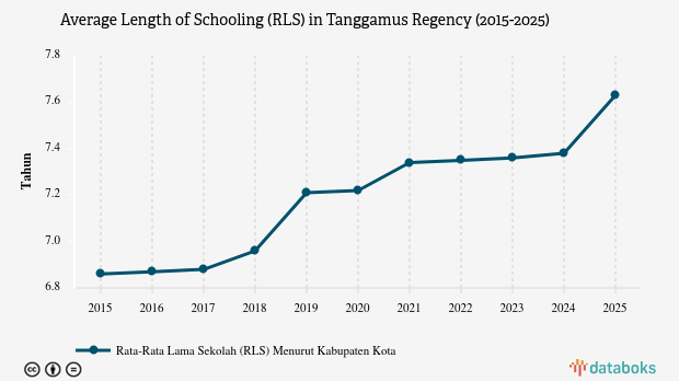 The average length of schooling (RLS) for residents aged 25 years and over in Tanggamus, Lampung reached 7.63 years in 2025.