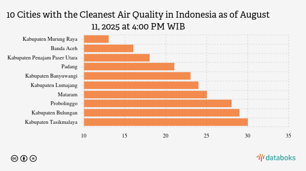 Below is the list of 10 cities with the cleanest air quality in Indonesia according to KLHK on Monday, August 11, 2025, at 4:00 PM WIB.