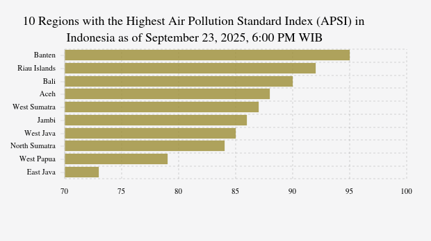Here is the list of the 10 provinces with the worst air quality index in Indonesia on Tuesday, September 23, 2025, at 6:00 PM WIB.