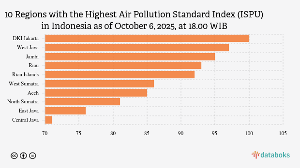 Here is a list of the 10 provinces with the worst air quality index in Indonesia on Monday, October 6, 2025, at 18.00 WIB.
