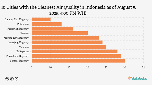 Here is the complete list of 10 cities with the cleanest air quality in Indonesia according to KLHK on Tuesday, August 5, 2025, at 4:00 PM WIB.