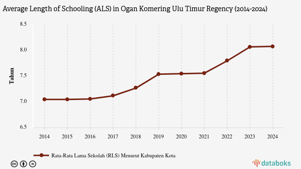 The average length of schooling (ALS) for residents aged 25 and above in Ogan Komering Ulu Timur, South Sumatra, was 8.08 years in 2024.