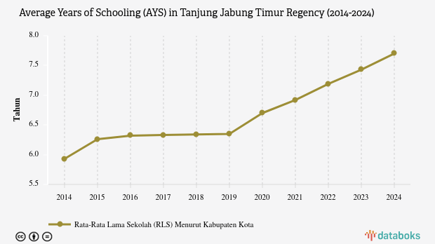 The average years of schooling (AYS) for residents aged 25 years and above in Tanjung Jabung Timur, Jambi, reached 7.7 years in 2024.
