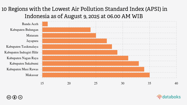 Banda Aceh's air quality is the cleanest in Indonesia this morning. Based on the air quality index version of the Ministry of Environment and Forestry (KLHK), Banda Aceh had a score of 16 on Saturday (9/8/2025) at 06.00 AM WIB.