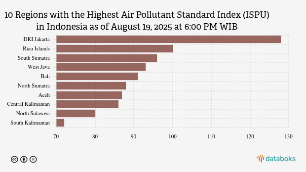 Here is a list of the 10 provinces with the worst air quality index in Indonesia on Tuesday, August 19, 2025, at 6:00 PM WIB.
