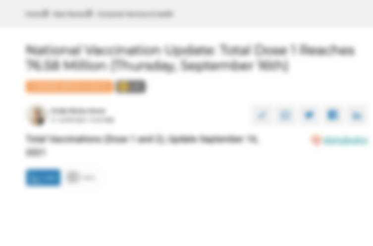 As of Thursday, September 16, 2021, a total of 121.95 million doses of the COVID-19 vaccine have been administered nationwide. This includes 76.58 million first doses, 43.74 million second doses, and 1.62 million doses administered through the "gotong royong" (community-based) vaccination program.
