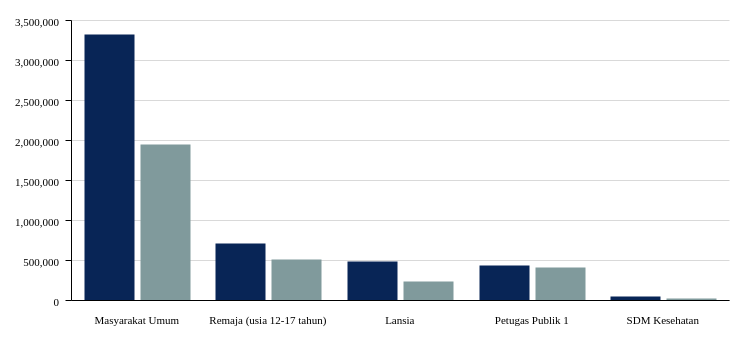 For public sector workers, the target was 409,850 people. The first dose vaccination reached 442,620 people (107.99% of the target), and the second dose reached 99.25%, or 406,780 people.