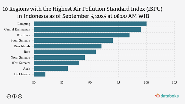 Air quality in Lampung this morning is the worst in Indonesia. Based on the Air Pollution Standard Index (ISPU) page of the Ministry of Environment and Forestry (KLHK) on Friday (5/9/2025) at 08:00 AM WIB, it was revealed that Lampung''s air quality index was 100.