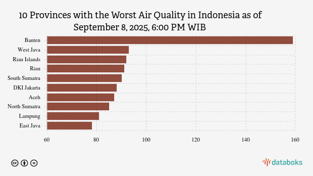 Here is a list of the 10 provinces with the worst air quality index in Indonesia on Monday, September 8, 2025, at 6:00 PM WIB.