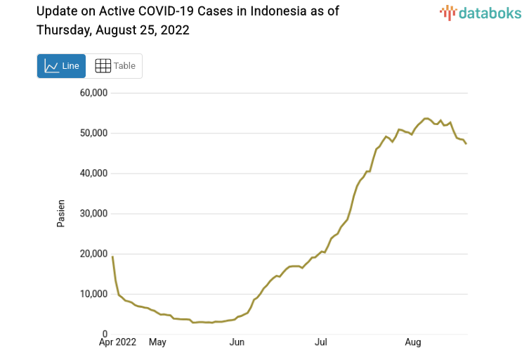 Active Covid-19 cases in Indonesia are currently declining again. According to a report from the Covid-19 Task Force, the number of active Covid-19 cases in Indonesia is now 47,193 as of Thursday, August 25, 2022.